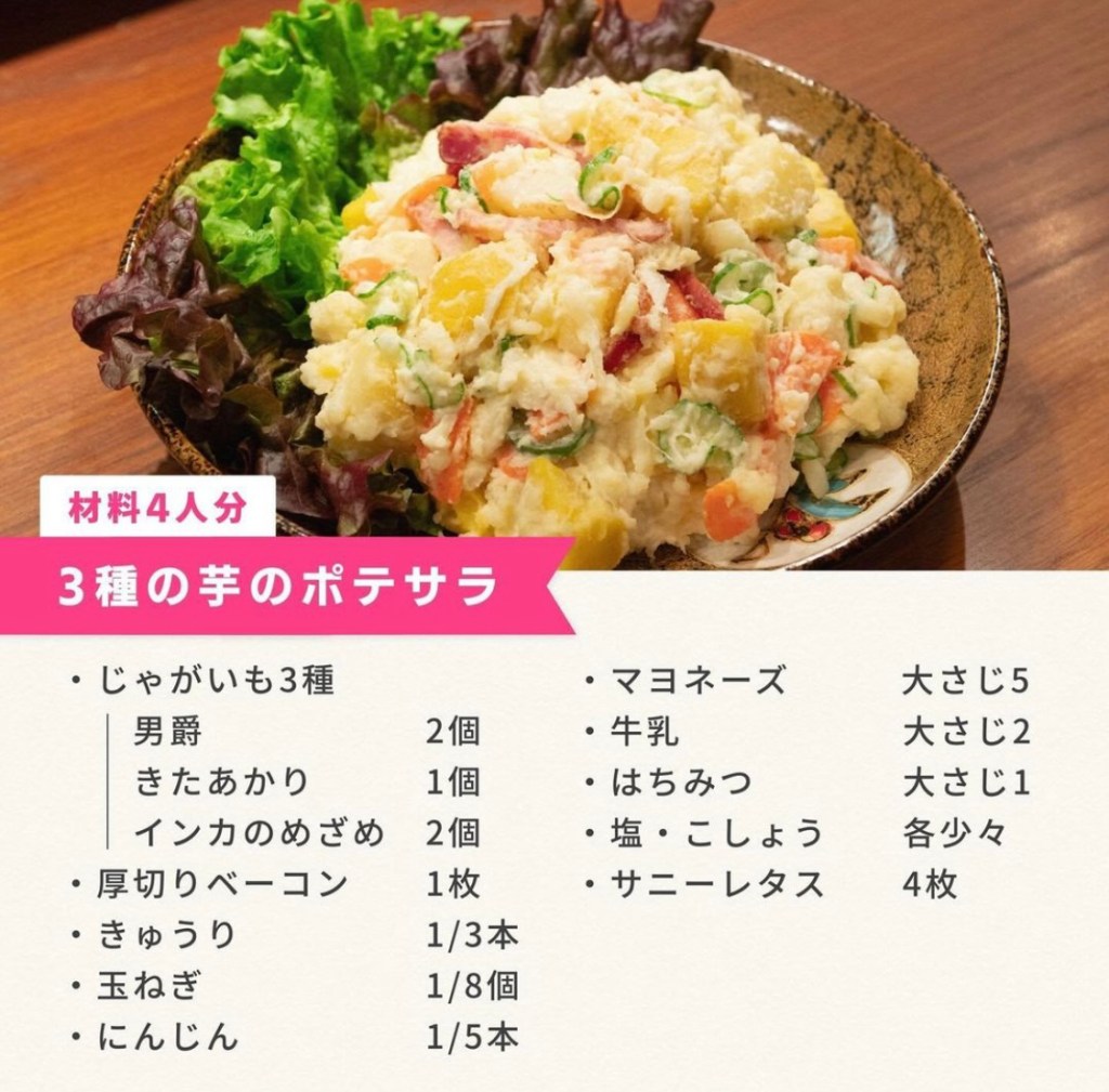 現在放送中の日本テレビドラマ「花咲舞が黙ってない」はご覧いただいているでしょうか?当学園は、同作の劇中料理を担当しております。本日は、劇中内に登場する《酒肴処 花さき》にて提供される、3種の芋のポテサラのレシピをご紹介いたします😊ぜひお試しください!