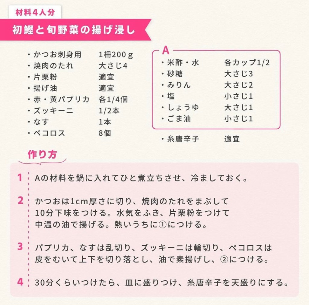 現在放送中の日本テレビドラマ「花咲舞が黙ってない」はご覧いただいているでしょうか?当学園は、同作の劇中料理を担当しております。本日は、劇中内に登場する《酒肴処 花さき》にて提供される、初鰹と旬野菜の揚げ浸しのレシピをご紹介いたします😊ぜひお試しください!